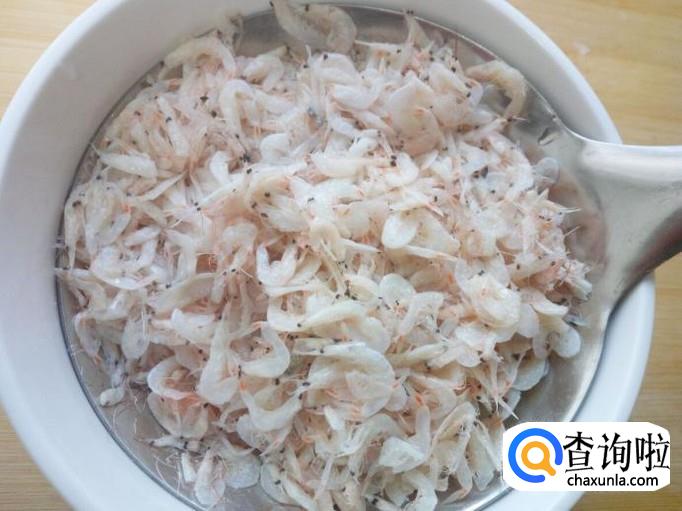 虾皮用水冲洗一下,控干水分。切好葱,姜,备用。