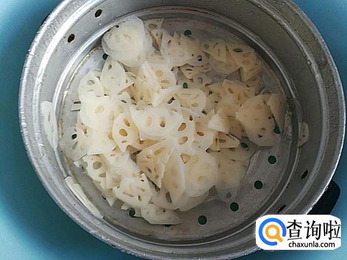 藕洗净去皮,切成片,用清水冲洗一下淀粉备用。