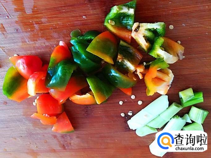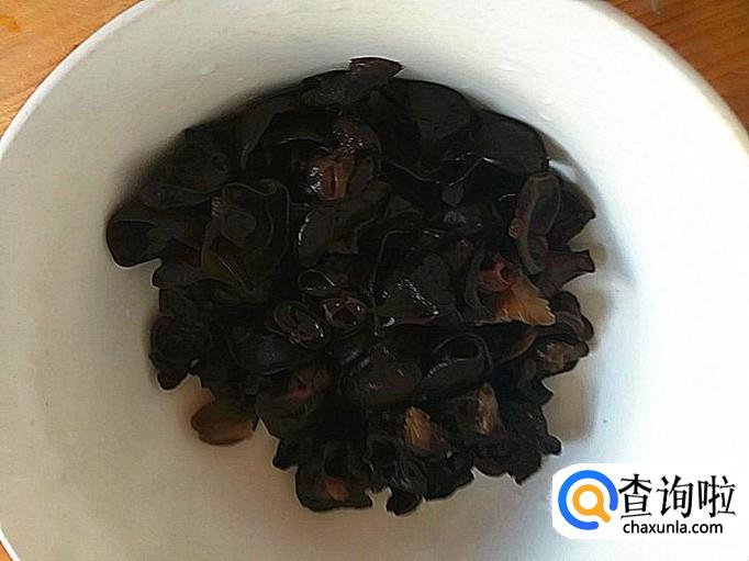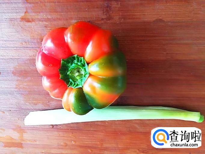 准备一个青椒、半根葱、适量的黑木耳备用。