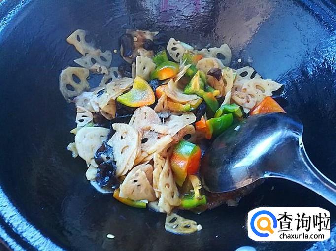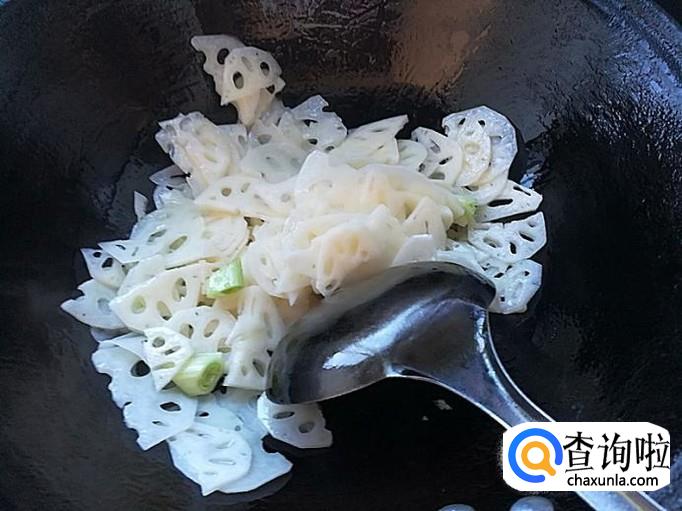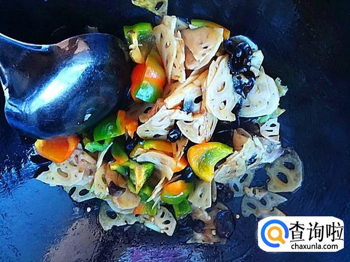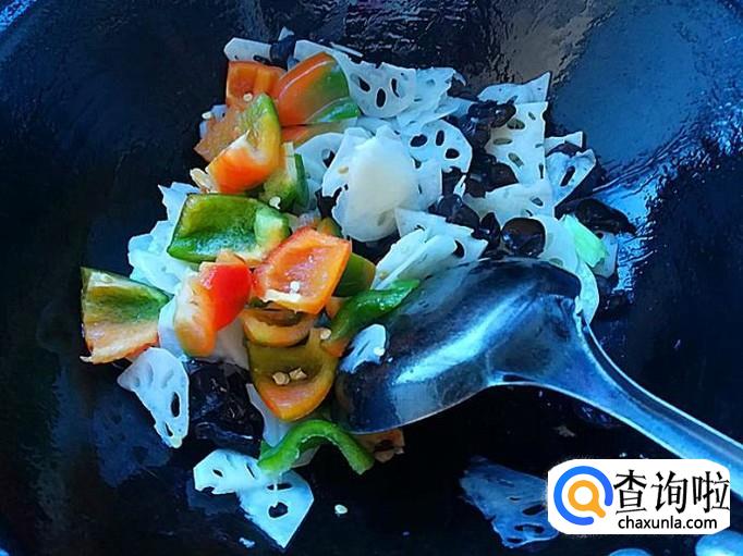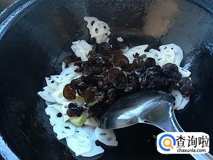 炒菜锅加入适量的植物油烧熟,把藕片倒入锅里炒一会儿,再加入准备好的黑木耳放翻炒几下。