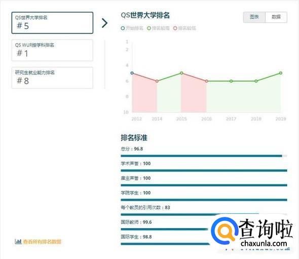 注:QS世界大学排名是世界公认最具影响力的全球性大学排名之一,主要评价指标为:学术领域的同行评价(40%)、全球雇主评价(10%)、单位教职的论文引用数(20%)、教师/学生比例(20%)、国际学生比例(5%)、国际教师比例(5%)