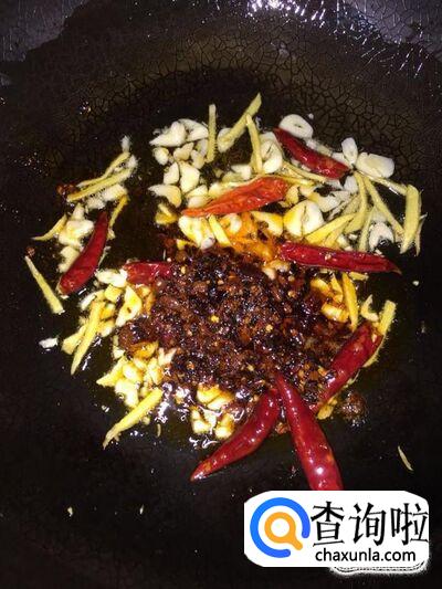 下一汤匙半老干妈辣椒酱,翻炒出红油,翻炒出香味;