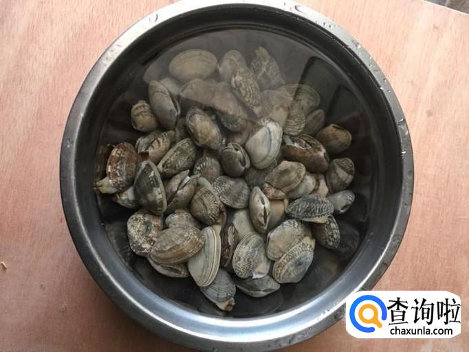我们将买来的花蛤用清水先冲洗至水澄清,再加盐和食用油泡一小时以上,再次冲洗干净,加入适量的料酒,抓匀,腌制半小时;