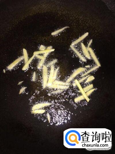开火,锅里加入适量的食用油,油温升高后,将姜丝先下锅里炒出姜香味;
