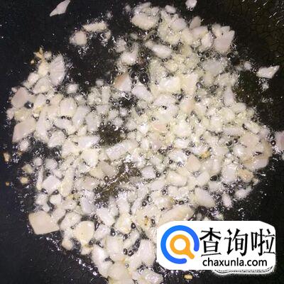 开火,锅里加入适量的食用油,待油温稍微升高,将洋葱丁下入锅里,炒香、炒至颜色变白;