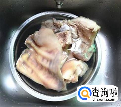 猪耳朵收拾干净,用刀多次刮表面,不然表面会很脏的哦,清洗干净之后,放进开水锅里焯水,变色之后捞出来用冷水冲洗干净。