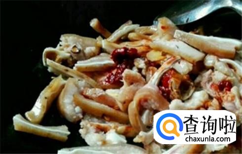 锅里放油烧热,把葱姜蒜放进去爆香,把猪耳朵放进一同翻炒,然后把红辣椒也放进去。