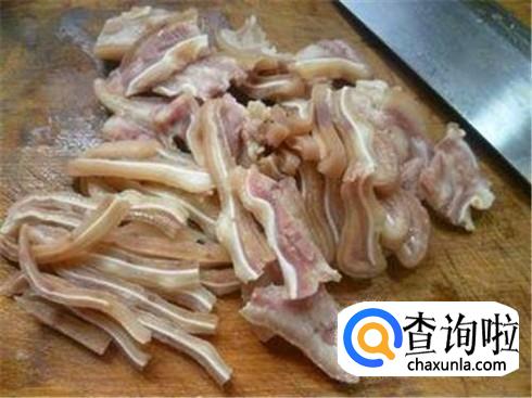猪耳朵用刀切成片状,很薄的地方切成条状,顺便切点葱花姜丝以及大蒜瓣和几个红辣椒。