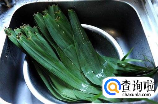 将粽叶重叠,侧身放在水盆里,室温水泡15-25分钟,最后用干净的抹布将正反面清洗干净