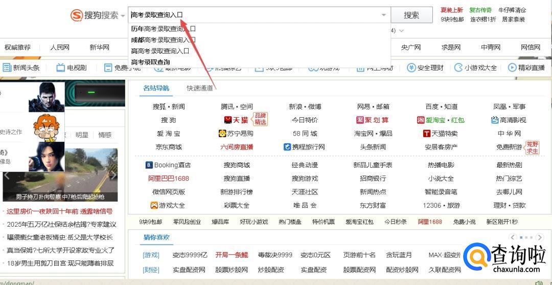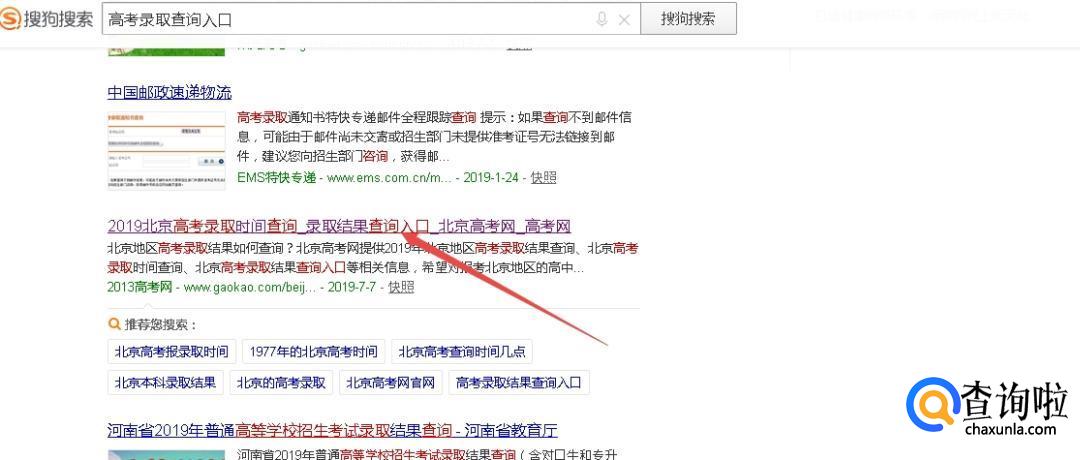 首先,我们在搜狗高速浏览器中搜索“高考录取查询入口”。
