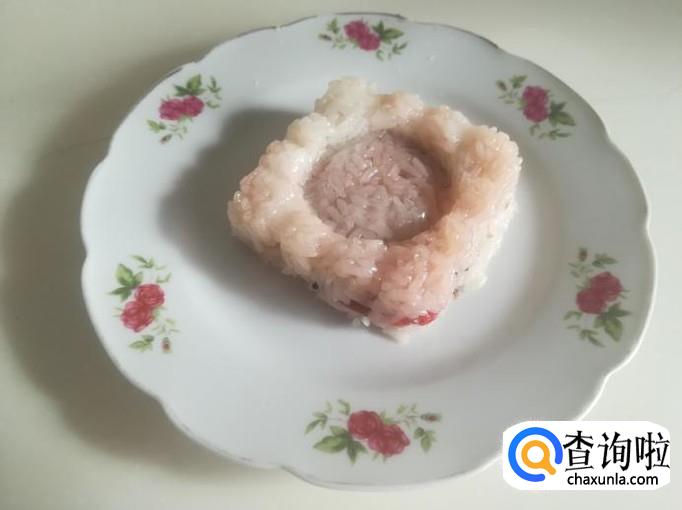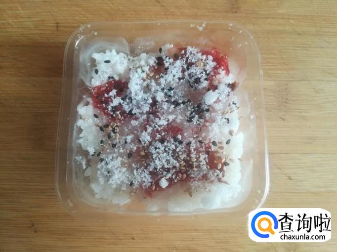 我们把糯米凉糕倒扣出来放盘子里,这样糯米凉糕就做好了。