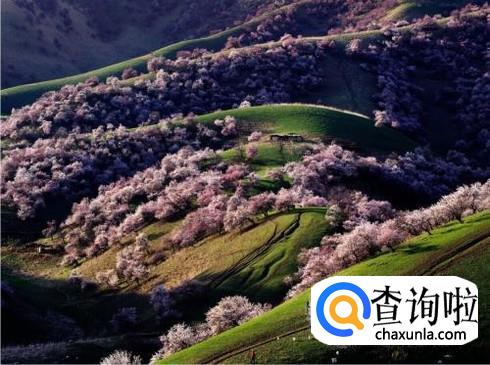 伊犁杏花沟是蓝色星球上的绝色美景,人间四月群芳中的花魁。进入暮春四月,新疆伊犁河谷,野杏花惊艳盛开,一团一团的粉色,犹如燃烧的云朵镶嵌在天山腹地初绿的草原上。