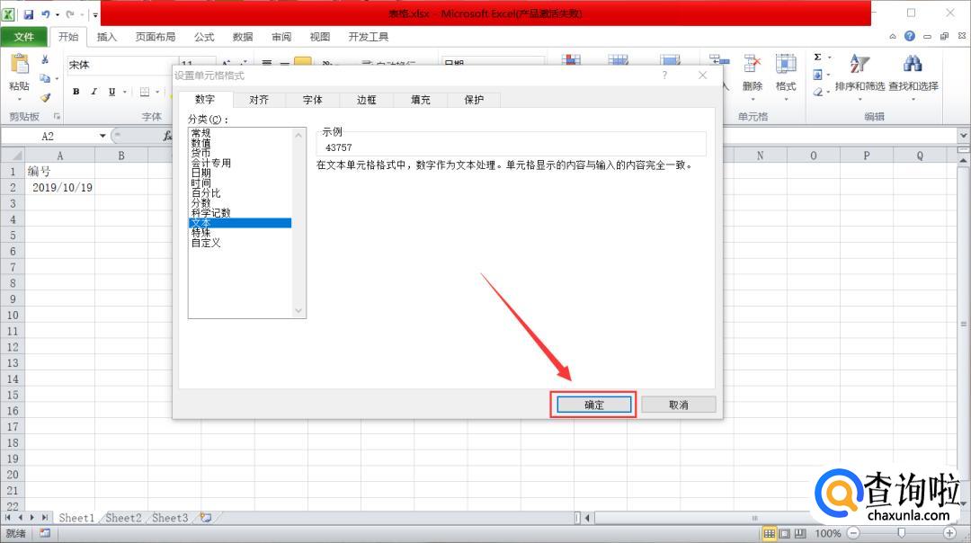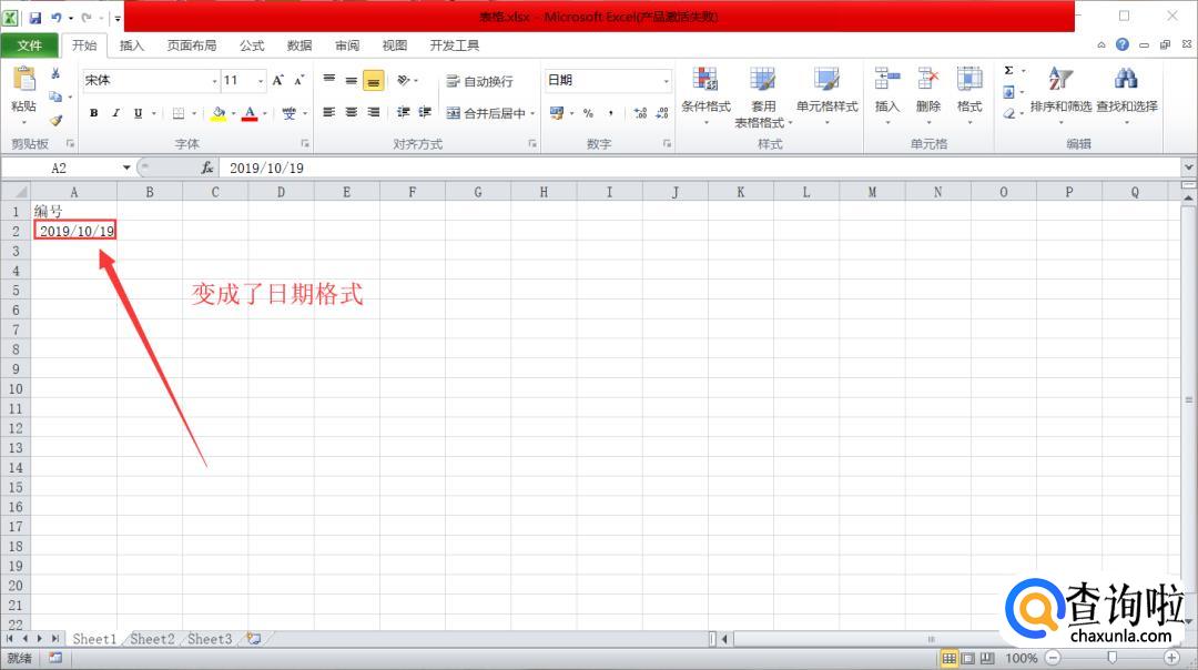 这样我们的编号就从日期格式“2019/10/19”变成了文本格式“2019-10-19”,说明我们设置成功了。