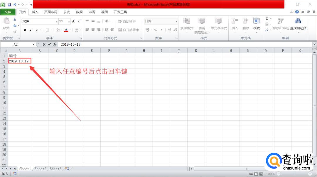小编在编号下方的单元格中输入“2019-10-19”,输完之后我们点击回车键。