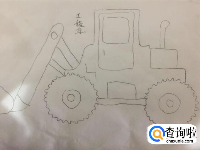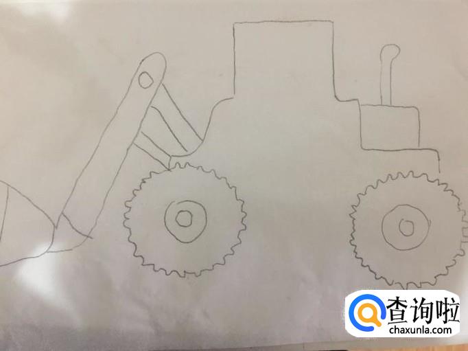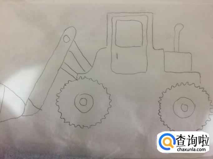 最后画出工程车两个轮胎之间的车杠就可以了。一幅工程车就画好了,希望大家能够喜欢。