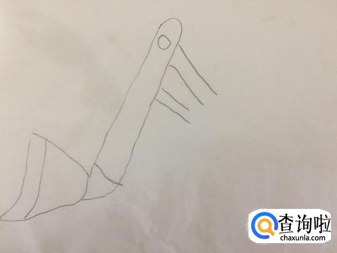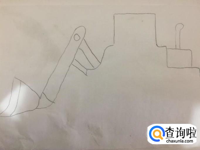 首先用铅笔在A4纸上画出工程车的操作臂,如下图所示。画这部分的时候需要注意的是,工程车的漏斗应该画成一个梯形的形状。
