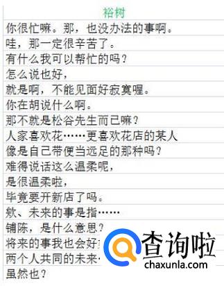 裕树是花店老板,是一个说话很温柔的男人,你对他也要温柔。
