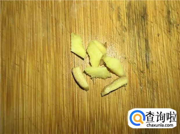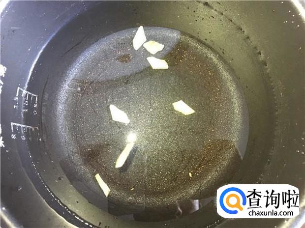老姜切片,锅里放入半锅水,加入适量的姜片,煮开。