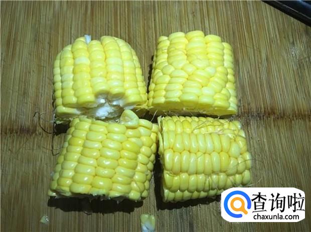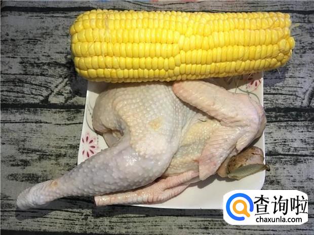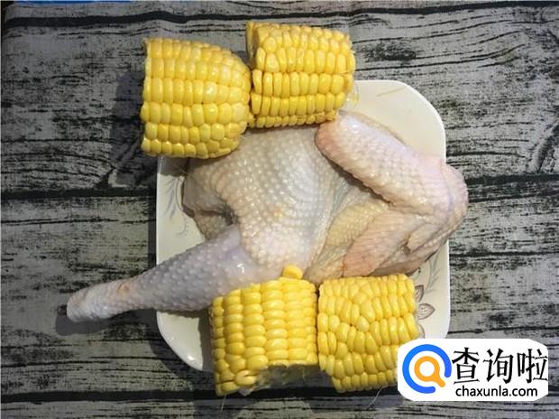 玉米清洗干净,切成四段,鸡清洗干净,备用。