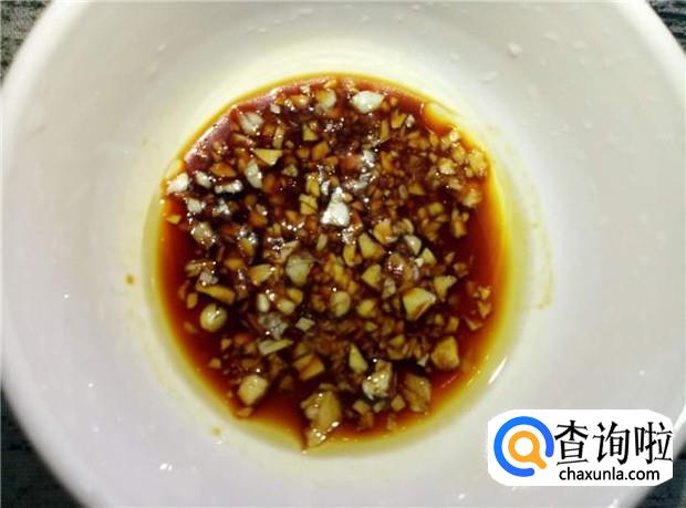 老姜、蒜头剁碎,放入碗中,加入适量的花生油、酱油、盐,搅拌均匀,即可沾着白切鸡吃啦,鸡肉很嫩滑,好吃。