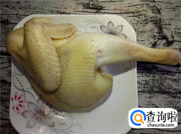 因为是做白斩鸡,所以鸡不要炖太久,电饭锅煮的话,大概20分钟,用筷子插在鸡腿上,没有血水留出来,就代表熟了。捞起来放凉。