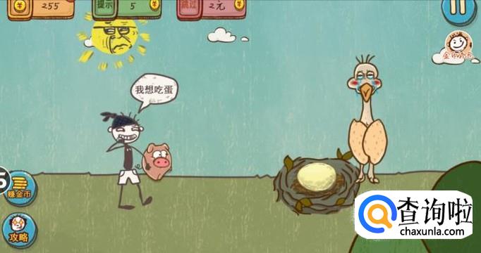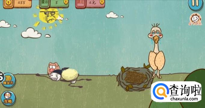 不能直接去偷蛋,否则母鸡就会啄你。先点击旁边的那个小粉猪,它会吹口气,把母鸡的鸡毛都吹落,然后母鸡就无暇顾及蛋了,再点击史小坑去偷蛋。