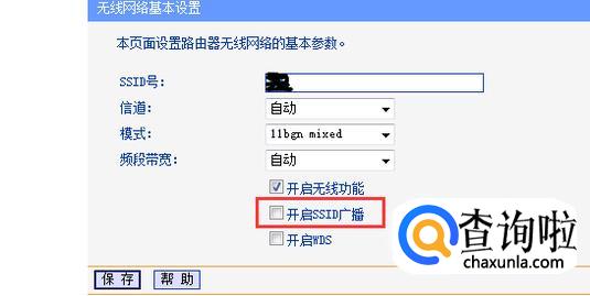 可以看到无线WiFi信号显示的名字,这里可以不更改,而下面的“开启SSID广播“选项,则需要将勾选去掉,然后点击下方的保存。最后重启一下路由器,别人想通过破解软件也很难搜到自己的SSID了,降低了被蹭网的几率。