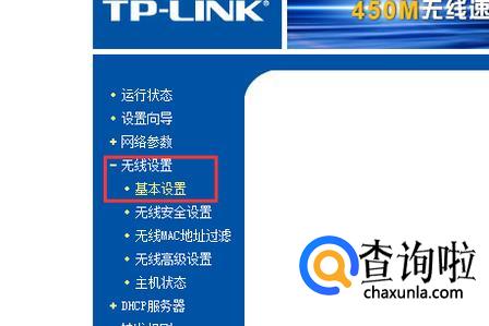 在弹出来的界面中,在左边的选项栏中选择无线设置中的基本设置。