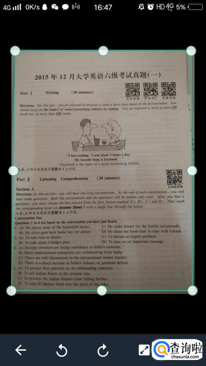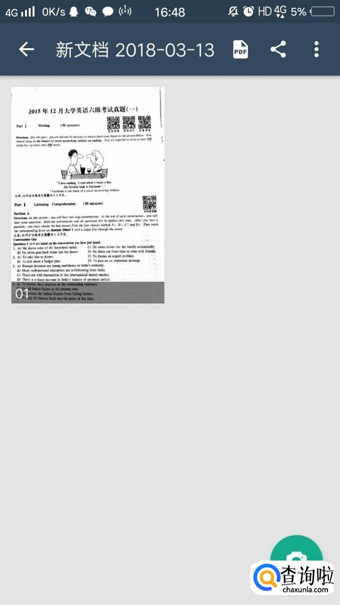 使用扫描全能王,点击进去,然后拍照。