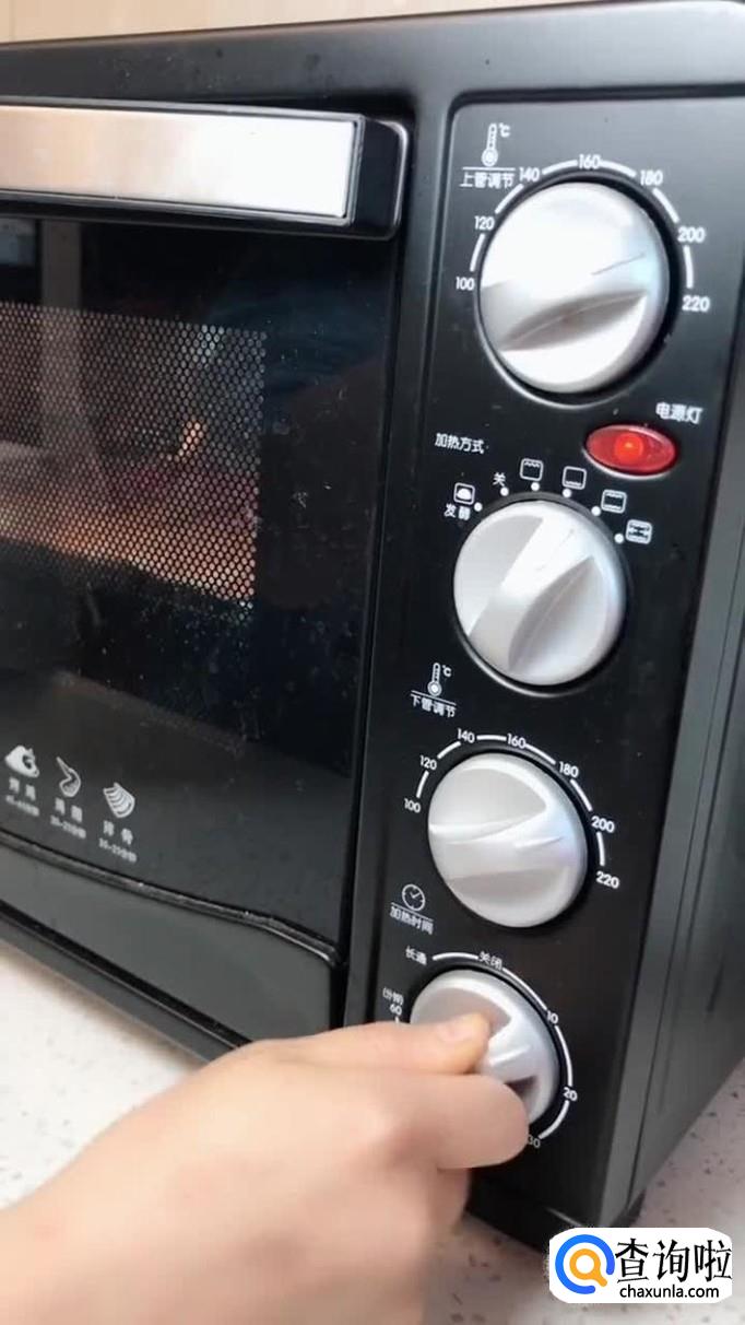 接着把烤盘放入烤箱,上下火开200度,烤15分钟,如下图所示。
