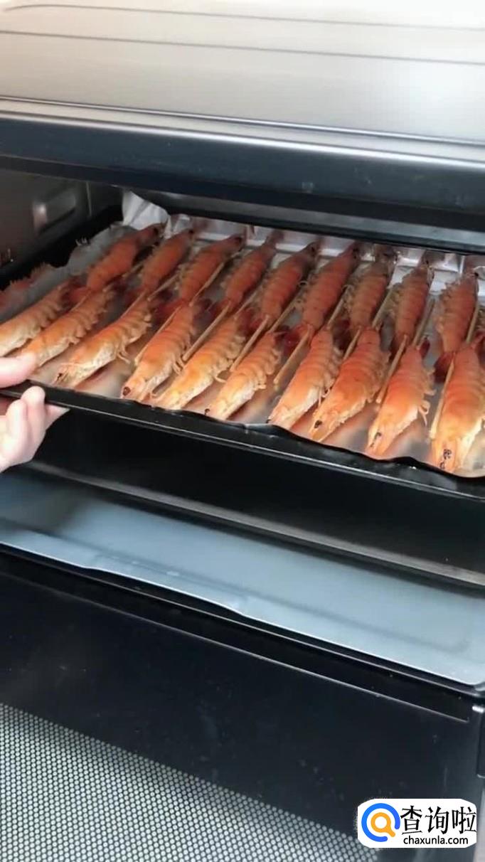 等虾呈金黄色就可以了。大家在拿烤盘出来的时候,一定要用专门的手套才行,否则是容易把自己的皮肤烫伤的,这点大家一定要注意。