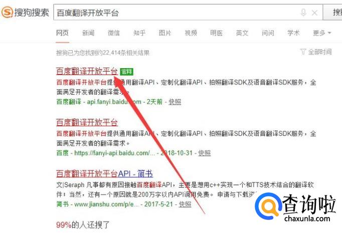 进入之后,搜索“百度翻译开放品台”,点击并进入,如图所示。