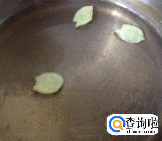在蒸锅下面加入几片生姜,倒入适量的黄酒,如图所示。