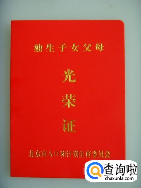 《独生子女父母光荣证》