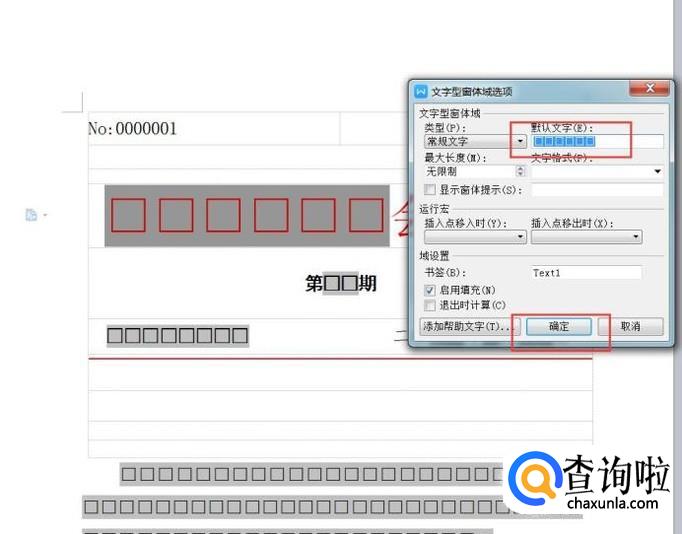 在打开的设置窗口页面中,修改模板中的□为我们想要修改的文字,再点击“确定”按钮即可更改为我们自己的红头文件了。
