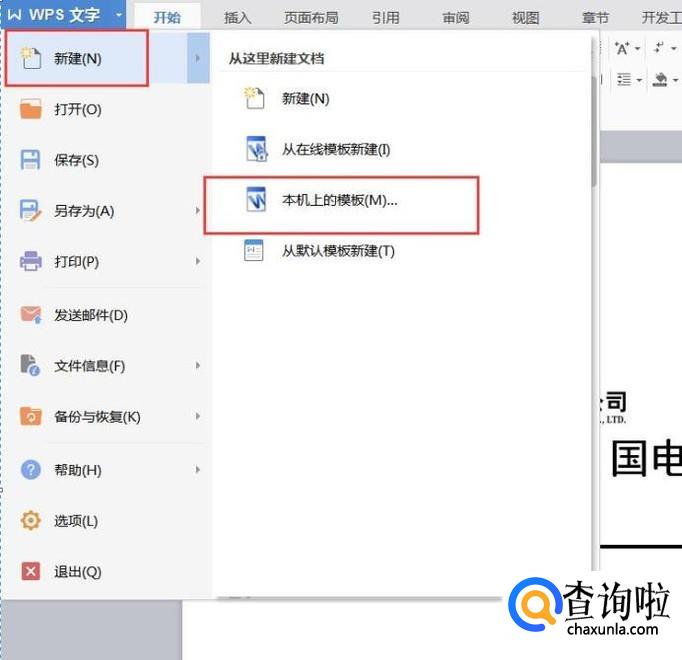 这里,我们以WPS文字为例,打开WPS文字程序,选择“新建-本机上的模板”选项。