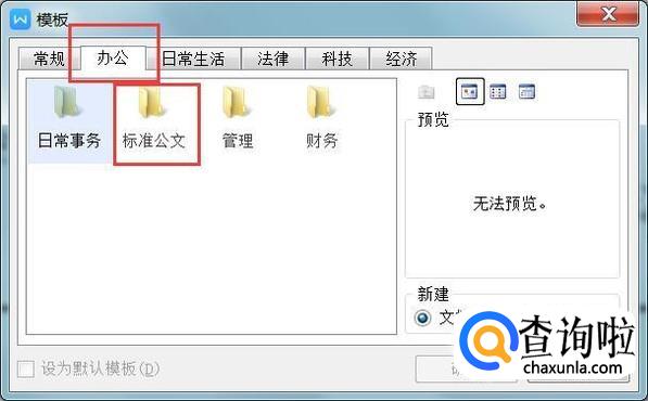 打开本机上存储的模板文件之后,选择“办公-标准公文”选项。