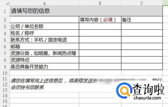 接着在模板当中输入自己的个人信息,并把表格发送到指定的官方邮箱当中,如下图所示。