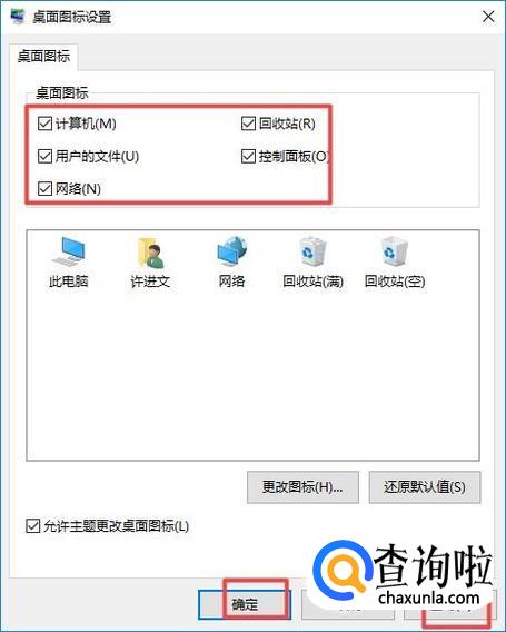 弹出的界面,我们将桌面图标全部勾选上,然后我们点击应用,之后我们点击确定,这样我们就设置好了。