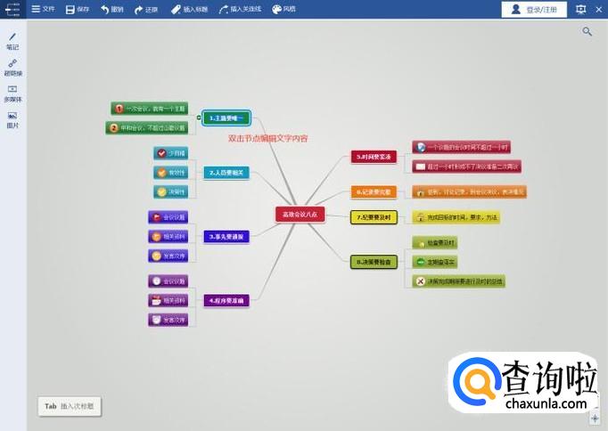双击节点即可编辑思维导图文字内容;