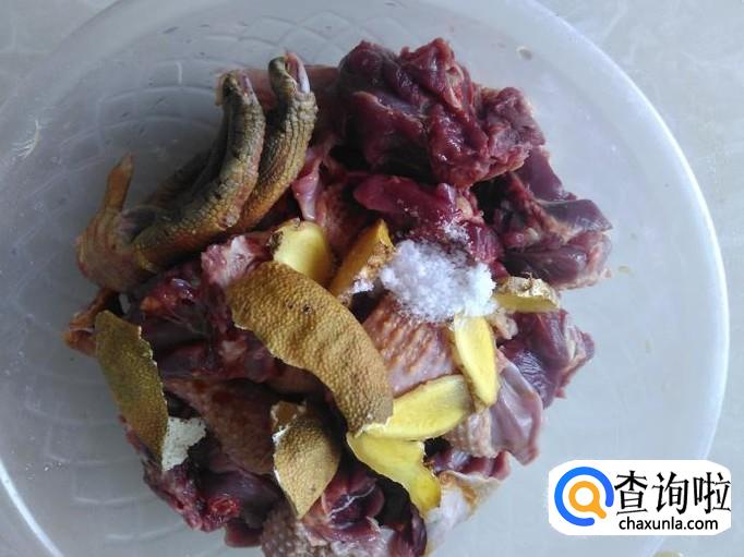 鹅肉一边,姜片适量,生抽3勺,料酒2勺,香菜适量。