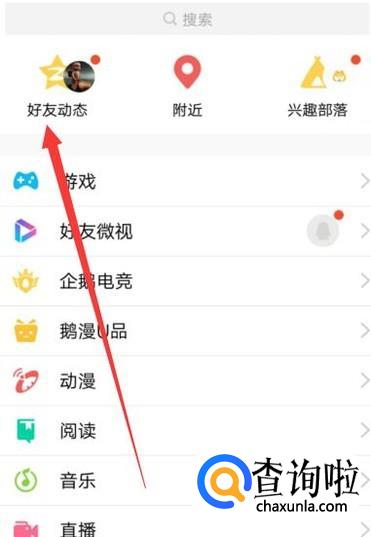 进入之后,找到“好友动态”,点击并进入,如图所示。