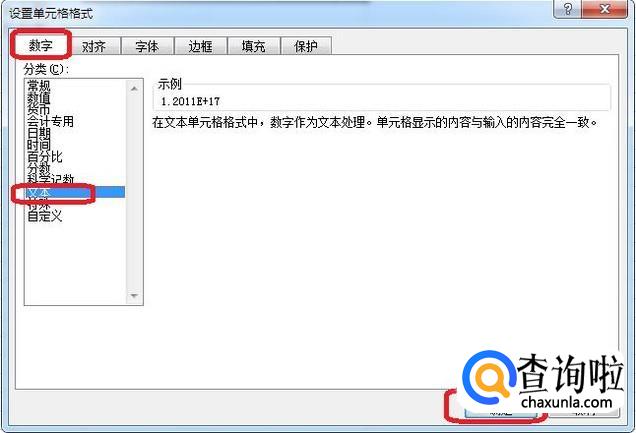 把数字分类改成“文本”,点击确定。
