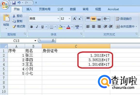 我们用excel输入身份证号,如图所示,输入后都变成了科学计数法的数字。