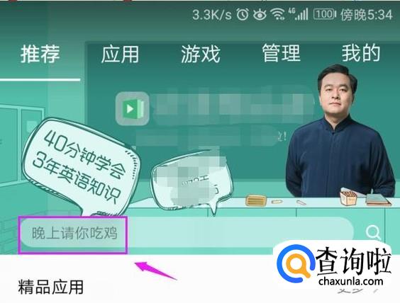 我们在安卓的应用市场上点击搜索栏,如图所示。