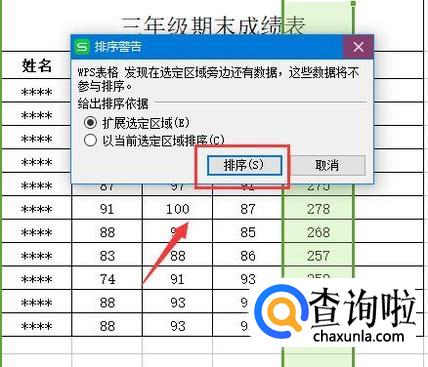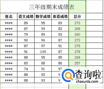 选中总分列(如图)