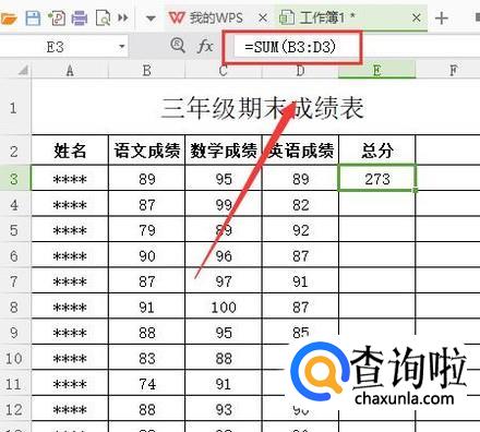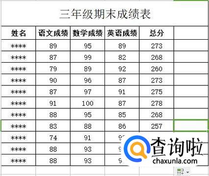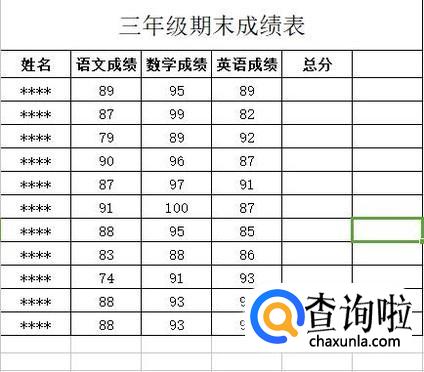 打开成绩表,输入学生各科成绩。