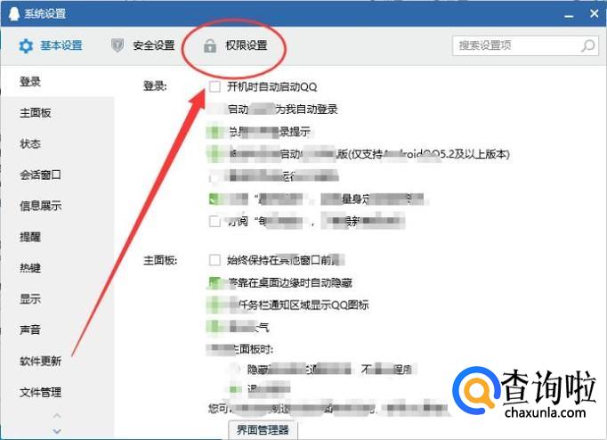 进入设置界面,点击“权限管理”,将页面切换到权限管理页面,如图所示。