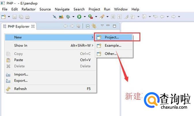 打开Zend Studio,在左侧的空白处右键单击选择New下面的Project选项,如下图所示
