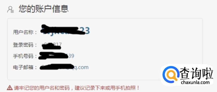 填写好了之后点击确认,系统会提醒你记住你的注册信息,这时候你需要做好记录。